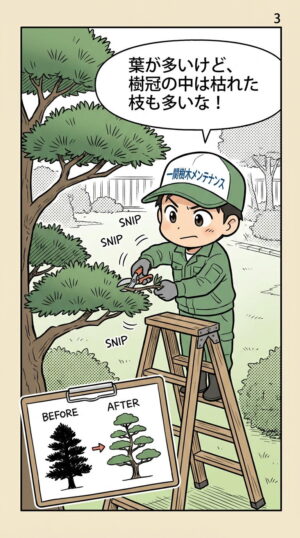 しかも、風通しが悪いと病害虫が発生しやすいので、松が枯れる可能性はさらに高まります。